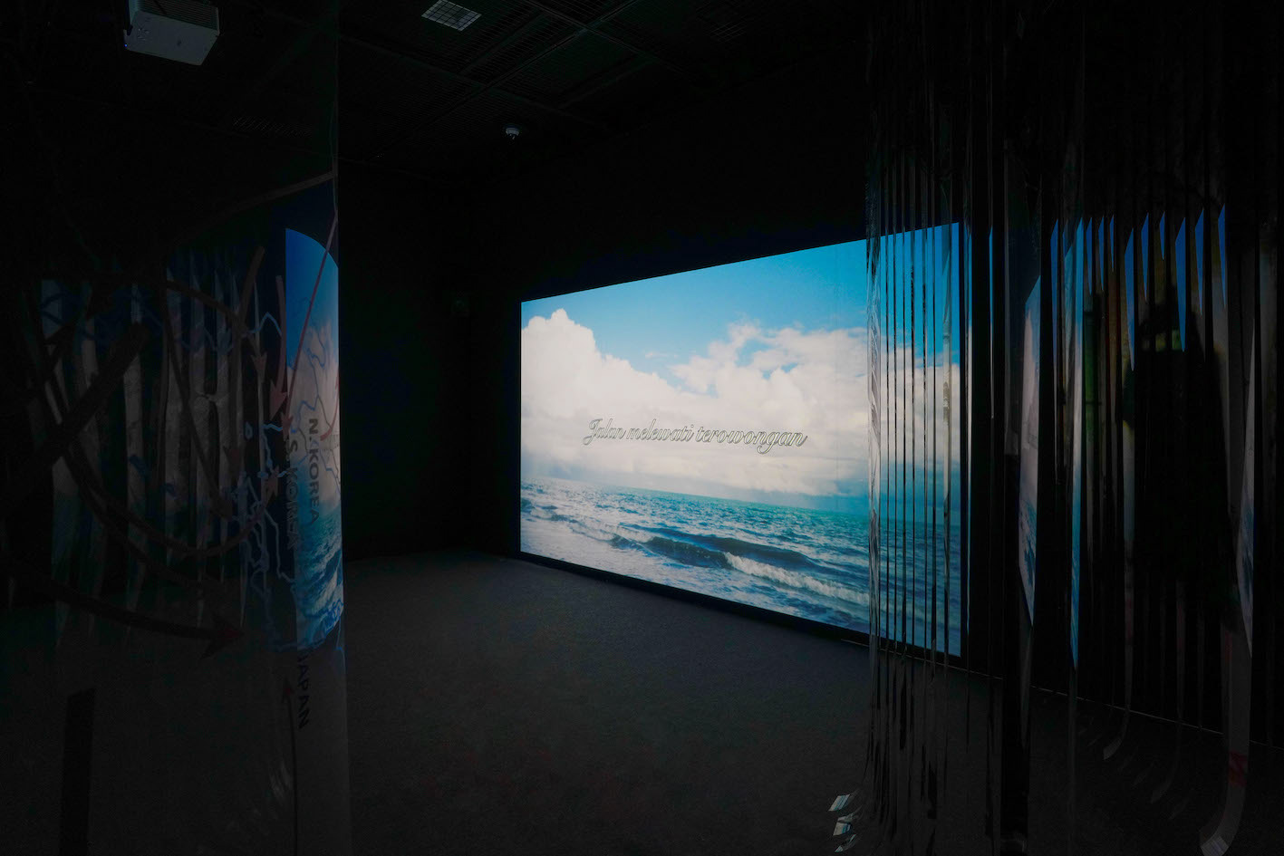 이번 전시의 영상 <긴 터널을 지나는 법>은 2채널 비디오로 ‘이주’라는 과정의 시간에 대한 이미지를 담고 있다. 지난 작업에 인터뷰이로 참여해주었던 나왕엔다, 윤띠아나 씨가 출연해주었는데 늘 뒷모습이나 옆모습, 움직이는 모습만 담았지만 이번에 우리는 똑바로 카메라를 보았다. 이것은 그 뒤의 나-작가와 그녀 사이의 이해가 깊어지며 자연스런 초상을 담아낼 수 있는 순간을 함께 맞이하고 있음을 시사했다. 영상은 이 세계에 대한 무기력과 냉소에 맞서기 위해서 서로에게 지어보이는 미소와 그 반대편에 놓인 시선에 응수한다. 장소로부터 맥락이 분리 된 사물과 존재들 그리고 공간 사이를 오가며 보다 나은 삶을 향해 이주를 택한 그녀들의 움직임으로 기나긴 터널을 헤쳐 나가려 했다. 작품의 배경으로 등장 하는 터널_동굴은 가려진 시대의 상흔이며 약탈과 축적의 경로를 타고 국가라는 단일하고 배타적인 정체성의 경계를 이동하는 이주여성의 얽힘과 충돌 가득한 세계이다. 그리고 전시 공간의 입구부터 출구까지 설치된 작품 <밤이 걸어간다.>는 역사적 장소와 인물, 이주여성의 이미지를 투명필름에 인쇄하여 층층이 레이어를 형성하도록 전시장의 복도 공간에 설치되어 있다. 앞뒤로 겹쳐 보이는 이미지들은 버티컬처럼 컷팅 되어 관람자가 그 사이를 지나가는 경험을 통해 영상과 상호작용하며 ‘이주’라는 시간과 장소의 경험을 몸에 닿아 어렴풋하게나마 사유할 수 있길 바랐다.
